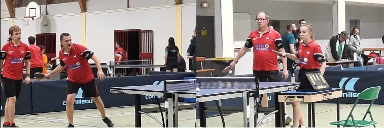 Pour les doubles, on choisit de mixer les "familles" avec les combinaisons Naïs PRUNIER/Jean-Michel PLU et Grégoire PLU/Mickaël PRUNIER... Choix payant puisque nous gagnons les 2 doubles pour passer à 6-4 avant les derniers simples.